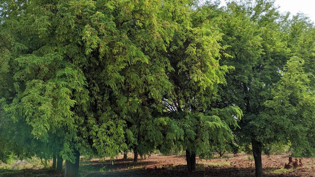 Teak, silver oak, and Mahoganyplants all around the plots acts as natural fence around the property. 12-year-old Mango Trees, Sheep and Poultry enclosures create a complete Farm & Farmhouse experience.